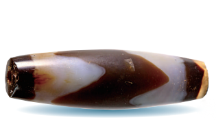 西藏阿里曲踏墓地出土的蝕花瑪瑙珠。中國社會科學(xué)院考古研究所、西藏自治區(qū)文物保護研究所供圖