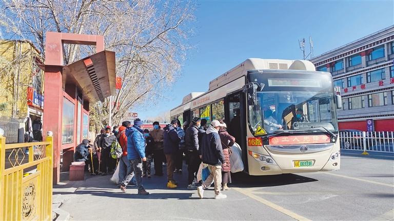 近年來(lái),拉薩公交始終將“提供綠色出行”作為使命,加速新能源公交車更新步伐,讓市民乘車更低碳環(huán)保。 圖為拉薩市區(qū)已在運(yùn)營(yíng)的新能源公交車。記者 格桑倫珠 攝
