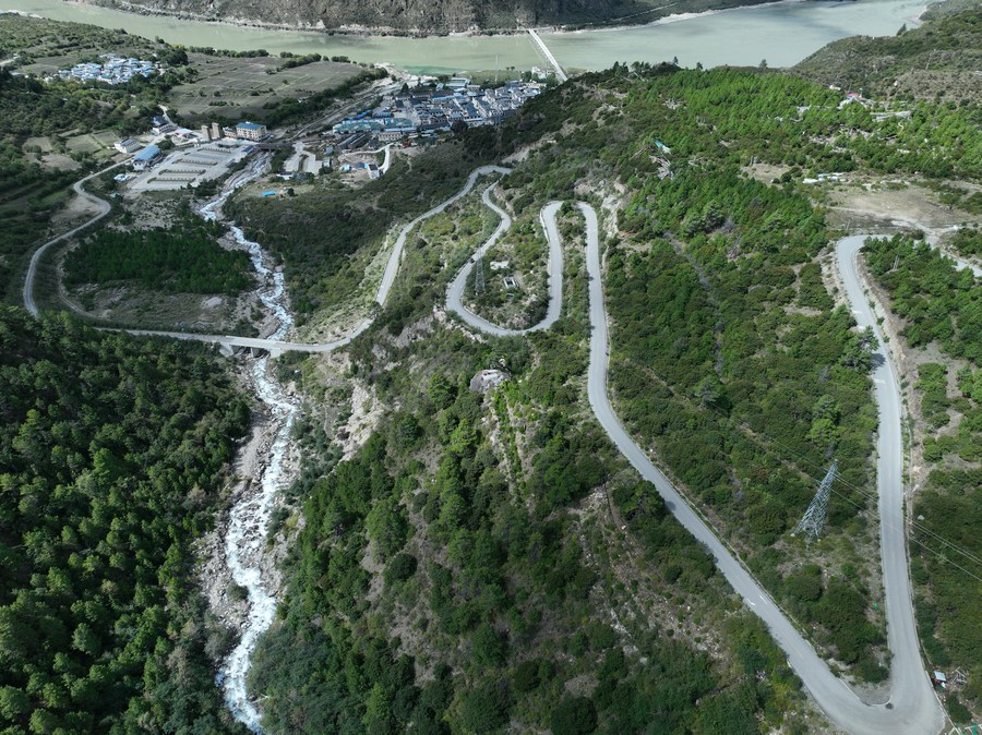 這是2022年9月30日拍攝的派墨公路派鎮(zhèn)起點路段(無人機照片)。新華社發(fā)(董志雄 攝)