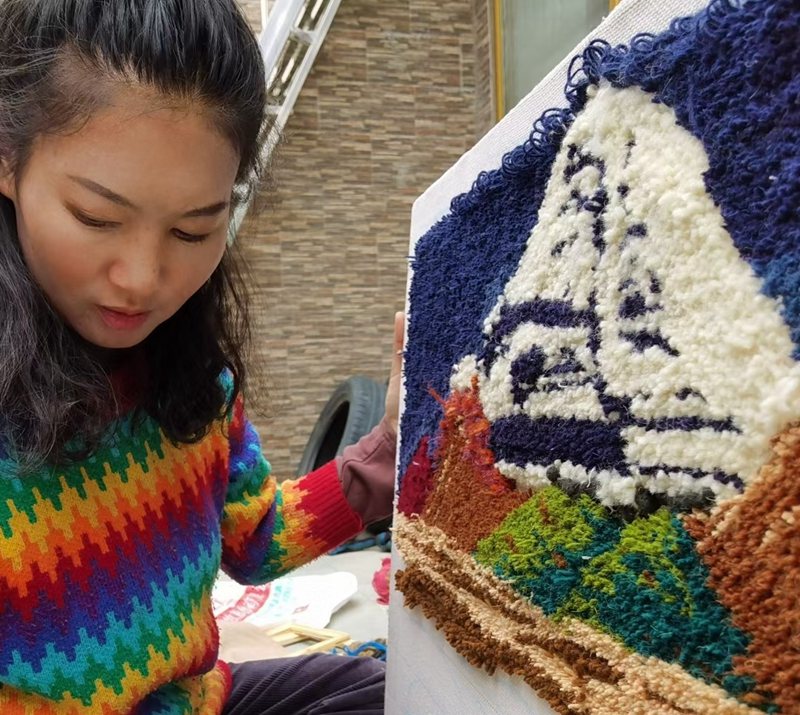 除了賣產(chǎn)品,次仁曲珍也心系十里八村的其他群眾?!拔覀兊脑牧希ㄑ蛎?、羊絨),都是從周邊村子收購的。其實,以前很多老百姓家的羊毛要么自用,要么送人,幾乎很少出售?,F(xiàn)在他們可以送到我這里,市場價7元—10元/斤?!惫爬系募徔椉妓嚺c珍稀羊毛(絨)材質(zhì)融合,是每一位阿佳用心編織的直抵人們內(nèi)心深處的柔軟,更是她們的五彩夢想。