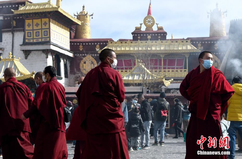 1月12日,西藏拉薩,僧侶圍繞八廓街轉(zhuǎn)經(jīng)。 李林 攝