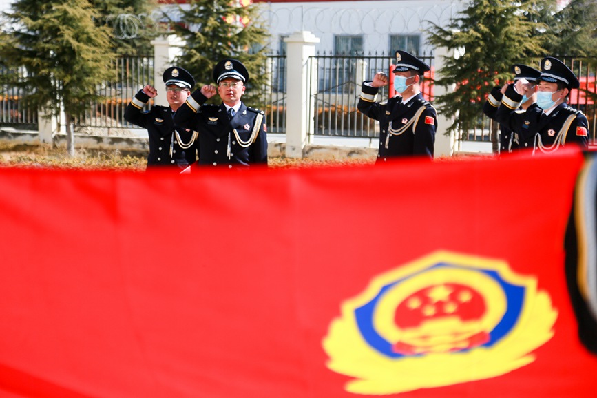 1月9日上午,拉薩鐵路公安處組織迎警旗宣誓儀式,各單位干部民警身著警禮服整齊列隊、莊嚴肅立,在雄壯激昂的警歌聲中向警旗莊重敬禮。升旗儀式結束后,全體干部民警面向警旗,舉起右臂,齊聲宣誓中國人民警察誓詞,夯實獻身于拉鐵公安事業(yè)的堅定決心。