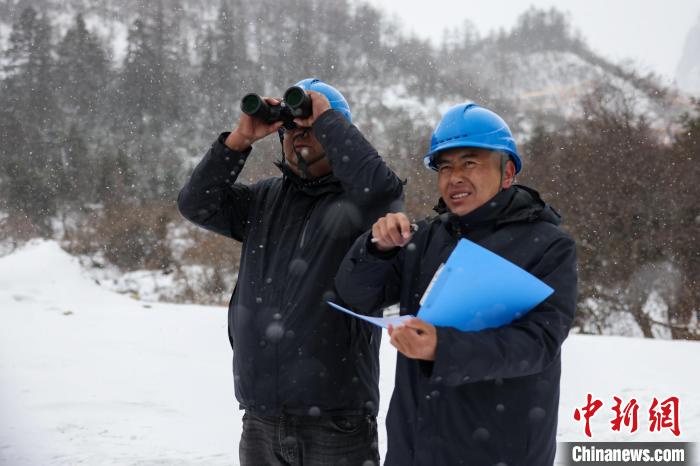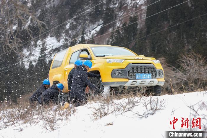 盤(pán)山公路上,積雪和暗冰使車輛打滑無(wú)法繼續(xù)前行,羅布頓珠和隊(duì)友只好下車,給車輛掛好防滑鏈繼續(xù)前行,原本兩個(gè)小時(shí)的車程,這次花了4個(gè)小時(shí)才抵達(dá)巡線點(diǎn)。