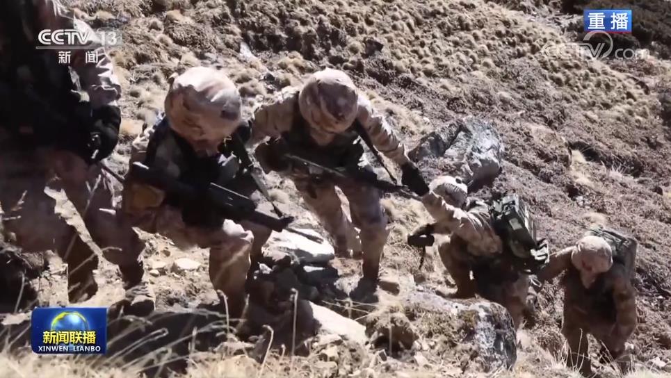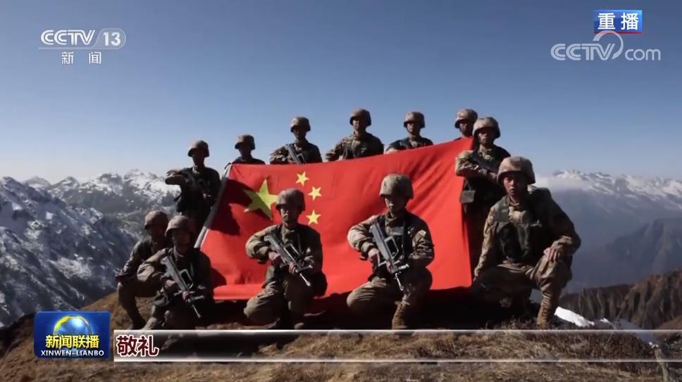 巡邏隊(duì)在中午登上海拔5000多米的高山點(diǎn)位,他們在這里展開國旗,宣示主權(quán)。