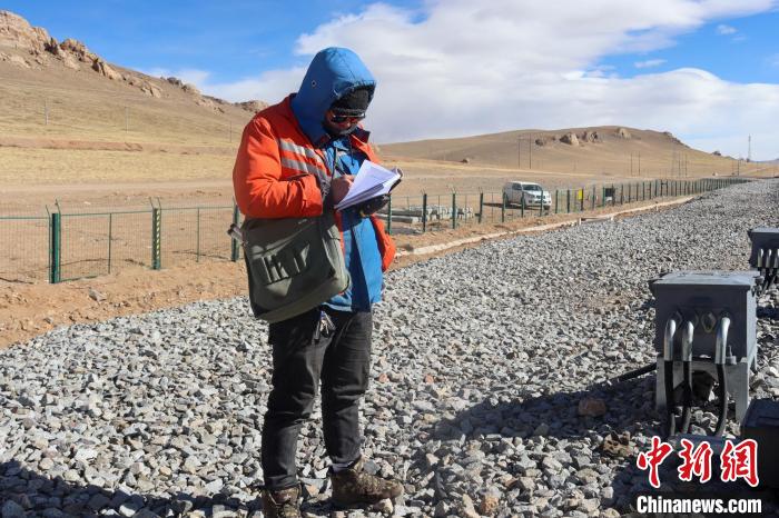 “今天還算暖和,風(fēng)不大,平日里檢修設(shè)備,大風(fēng)吹得眼睛睜不開,鼻涕也擦不完,凍得直哆嗦。”楊建青邊檢查邊說。因?yàn)殚L期在高海拔地區(qū),他面色黝黑,臉上都是被紫外線灼傷的痕跡。