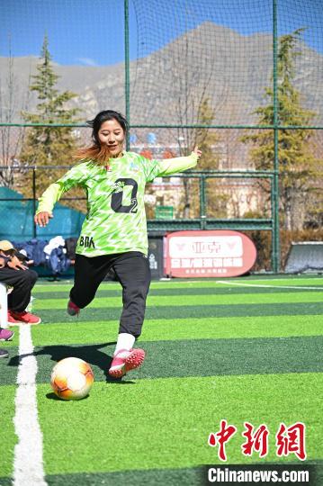 30日,一場由女性參與的5人制足球賽在海拔3650米的拉薩開賽。暖陽照耀,綠茵場上開始激烈角逐。由媽媽們組成的E隊(duì)率先進(jìn)球,并連進(jìn)四分。面對勁敵,由高中生、大學(xué)生組成的D隊(duì)有些力不從心,從年齡到經(jīng)驗(yàn)的差距,讓E隊(duì)一直遙遙領(lǐng)先。