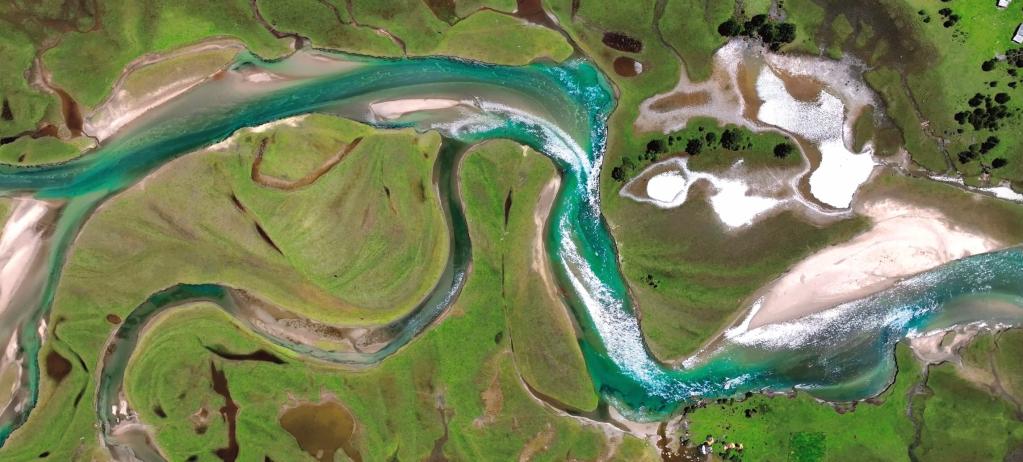 走向新措,沿途溪水潺潺,山林與草甸交織,靜謐安然。
