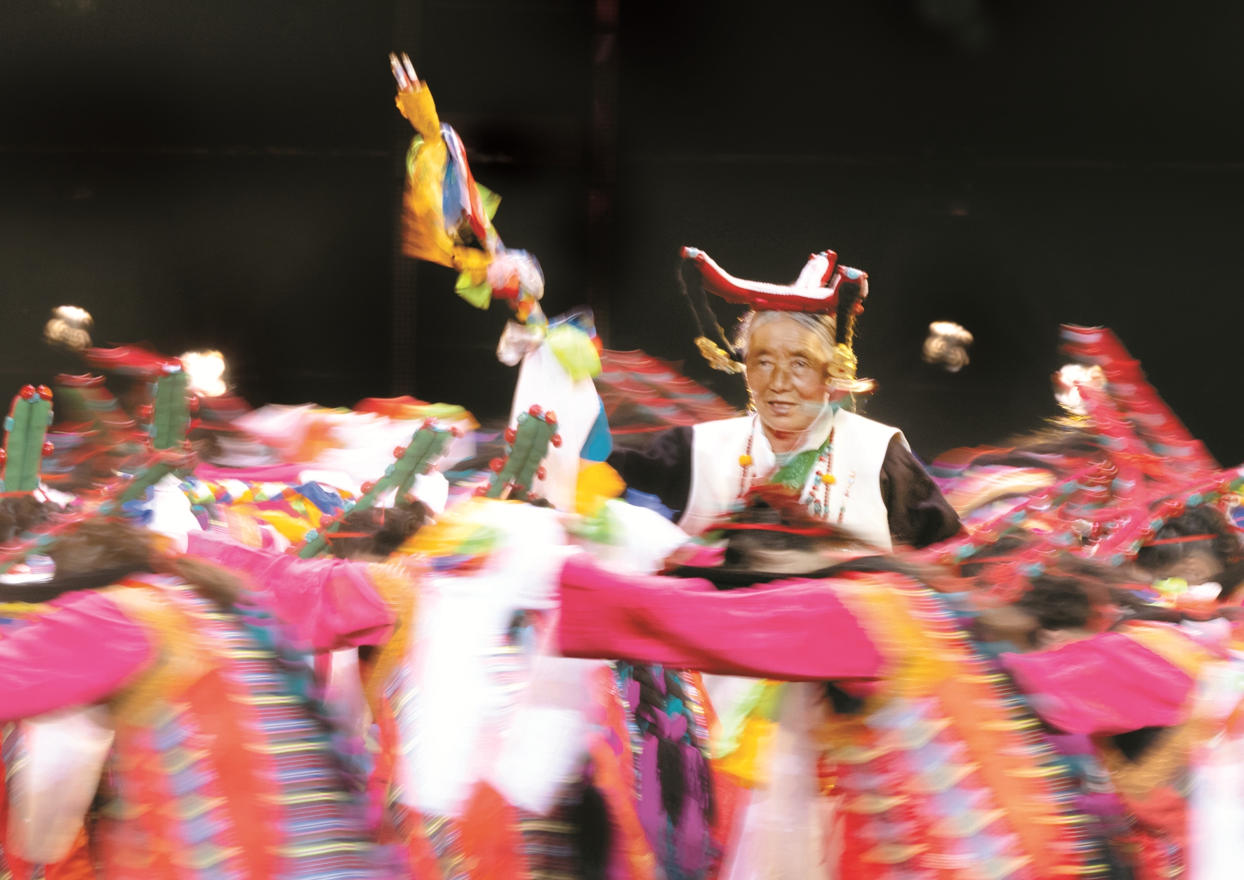 “諧欽”是西藏傳統(tǒng)歌舞節(jié)目,歷史悠久,深受廣大群眾喜愛。編導吳金曲珍介紹說:“這個節(jié)目是根據(jù)熱堆村的一個原生態(tài)舞種改編而成的,里面表現(xiàn)的是豐收的喜悅和對家鄉(xiāng)景色的贊美,節(jié)目中表演的34名演員包括一位老阿媽在內(nèi),都是群眾?!?/p>