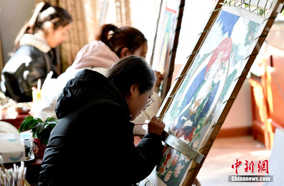 隨著經(jīng)濟(jì)社會(huì)的發(fā)展,在對(duì)非物質(zhì)文化遺產(chǎn)傳承越來(lái)越重視的背景下,也有了越來(lái)越多的西藏女性學(xué)習(xí)唐卡繪畫(huà)。她們?cè)趯?shí)現(xiàn)自己夢(mèng)想的同時(shí),也為民族文化的傳承與發(fā)展貢獻(xiàn)著“巾幗力量”。圖為3月8日,西藏唐卡畫(huà)院內(nèi)正在繪制唐卡的女學(xué)生。