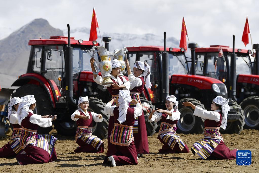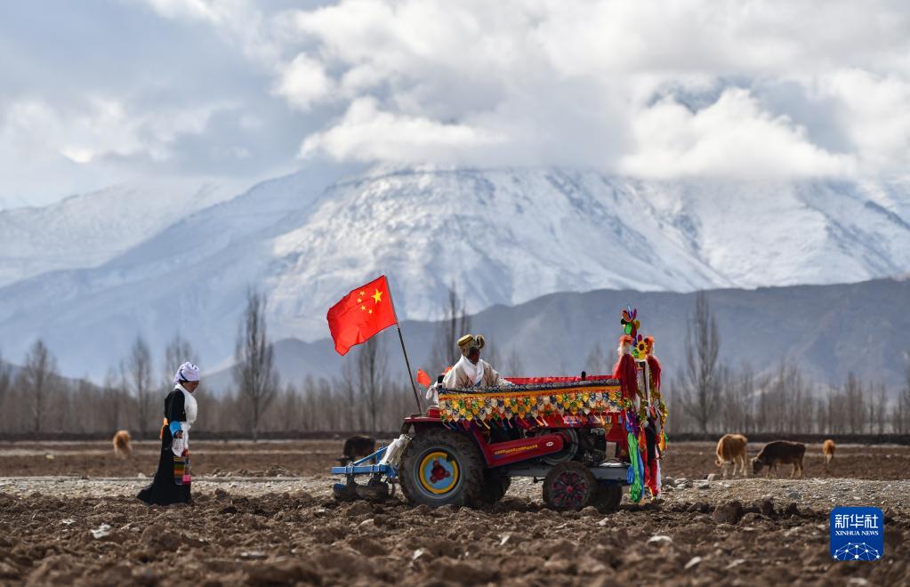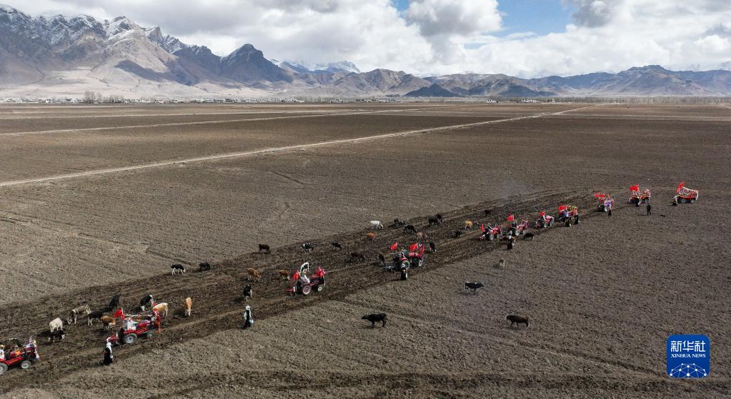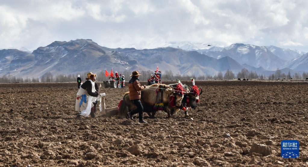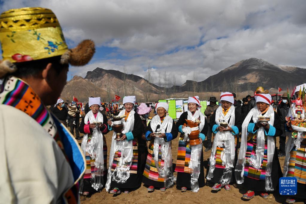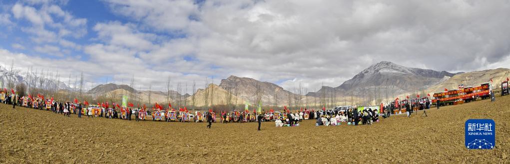 西藏拉薩市林周縣強嘎村的春耕儀式現場(3月16日攝)。新華社記者 晉美多吉 攝
