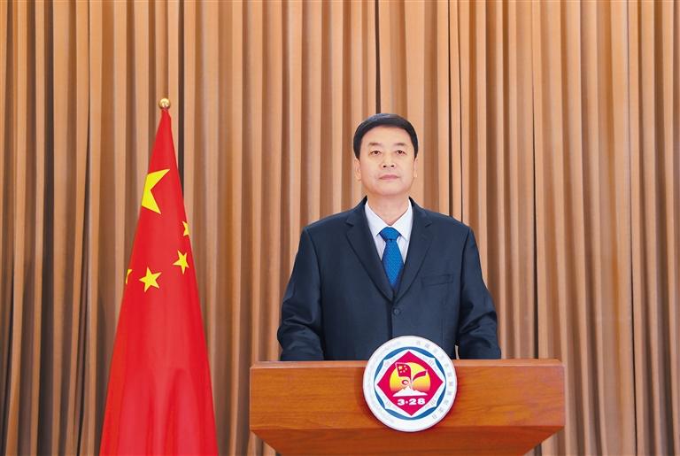 同志們,朋友們!征程越是壯闊,目標越是遠大,越需要核心的掌舵定向、真理的指引領(lǐng)航。今年的全國兩會,習(xí)近平總書記再次全票當選國家主席、中央軍委主席,充分反映了全黨全軍全國各族人民的共同心愿,充分體現(xiàn)了黨的意志、人民意志、國家意志的高度統(tǒng)一。有習(xí)近平總書記掌舵領(lǐng)航,我們就有了團結(jié)奮斗的“主心骨”、迎擊風(fēng)浪的“定盤星”!