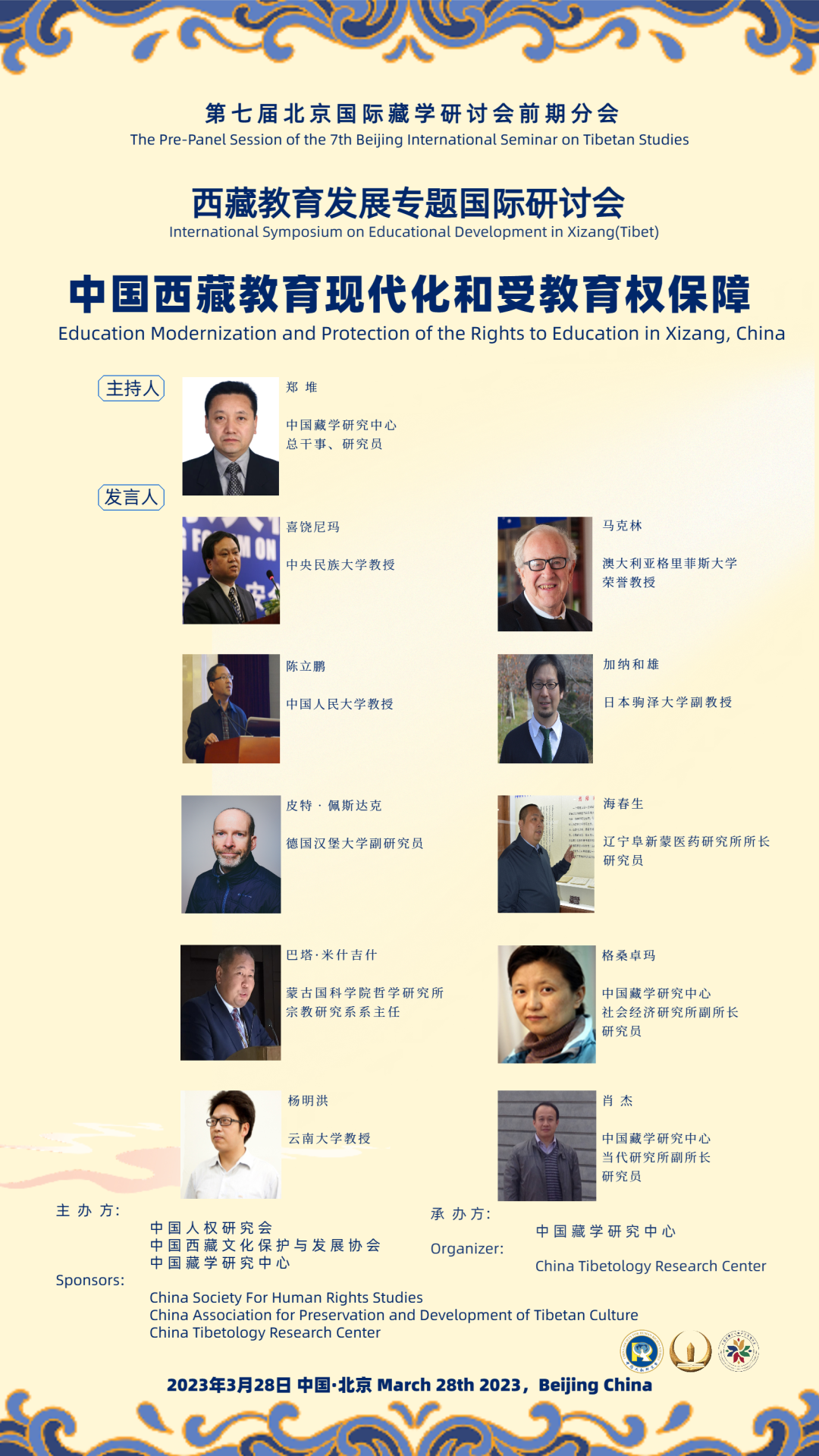 第七屆北京國際藏學研討會前期分會——西藏教育發(fā)展專題國際研討會,將于2023年3月28日下午14:30在北京召開。本次會議的主題是“中國西藏教育現(xiàn)代化和受教育權保障”。