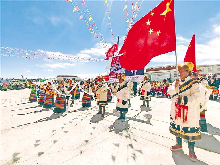 悠揚的歌聲獻給黨,歌唱黨的英明領(lǐng)導(dǎo);歡快的舞蹈跳起來,跳出人民幸福生活。從珠峰腳下到年楚河畔,從高原牧場到山谷林地,處處升起面面五星紅旗,贊美共產(chǎn)黨的歌聲響徹天際,匯聚起強大動能。