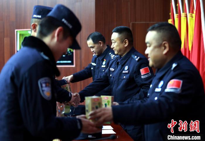 3月31日,授予驗訖章的移民管理警察與領(lǐng)導(dǎo)合影?!⌒じ毁F 攝