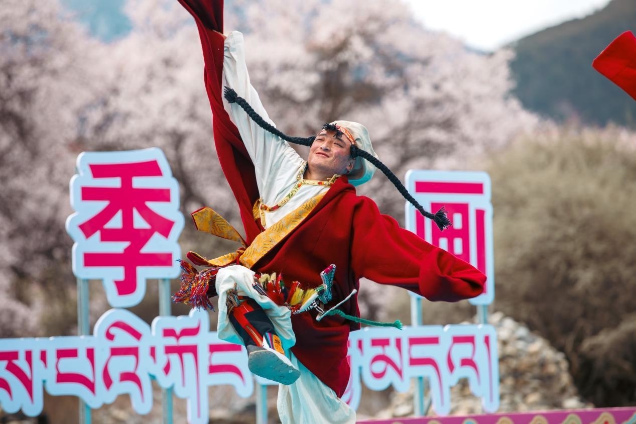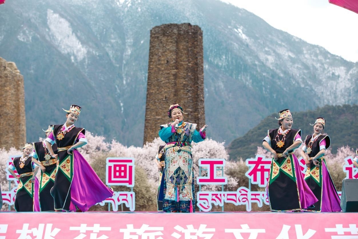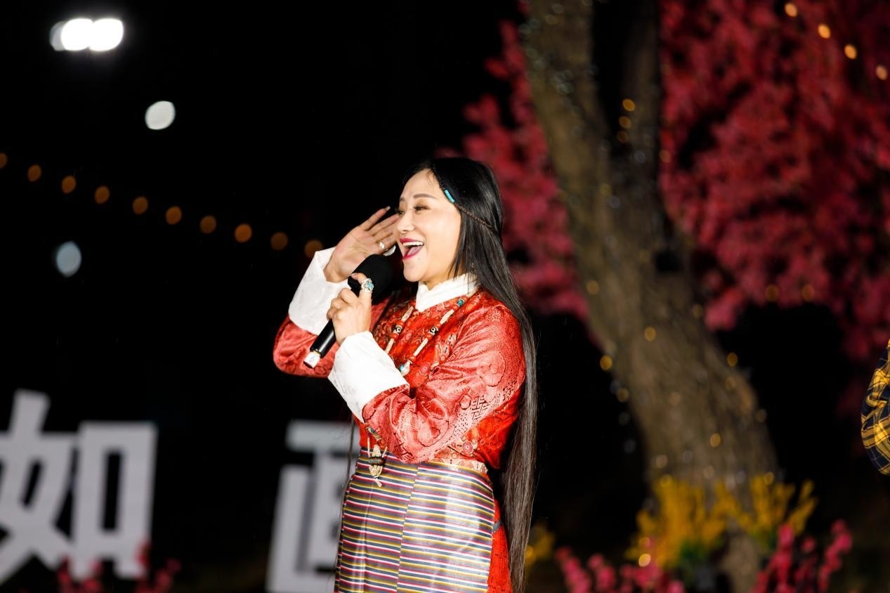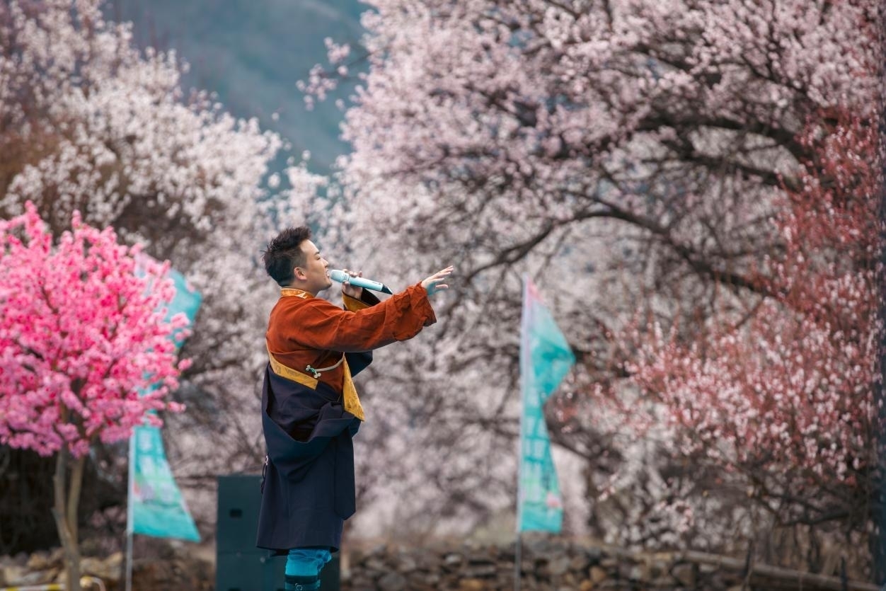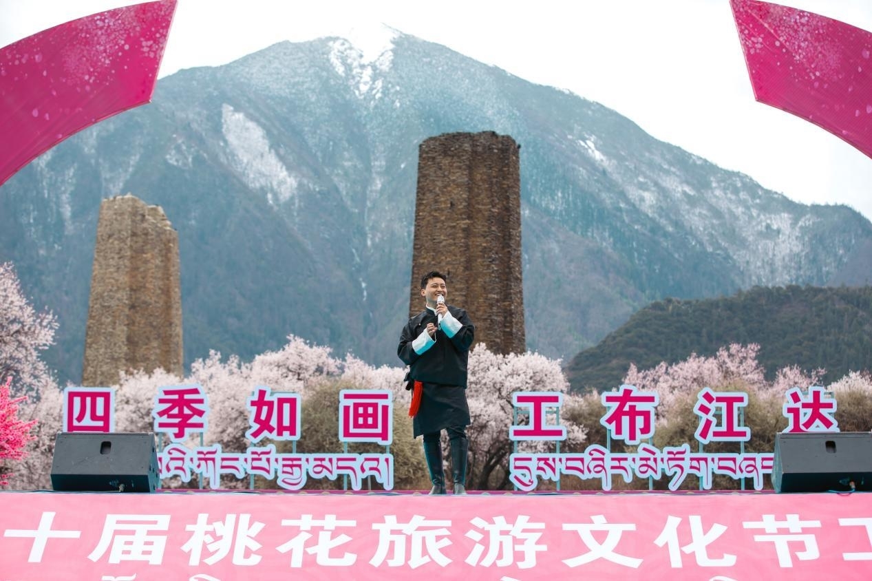 皚皚雪山下,千年古堡旁,灼灼桃花,花開正艷。羅布桑珠、巴金旺甲、齊旦布、桑杰才讓等藏族知名歌手、工布江達(dá)本地歌手、當(dāng)?shù)厝罕婟R聚,流行歌曲與工布民歌等當(dāng)?shù)靥厣硌萁Y(jié)合,為網(wǎng)友們獻(xiàn)上了一場桃花樹下的歌舞盛宴。