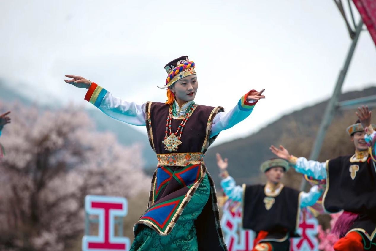 上午10:00開始的的群眾文藝聯(lián)歡會(huì),以歡快的《飲酒踏》開場,尼洋河水吟唱春日韻律,米拉雪山涌動(dòng)喜慶樂曲。