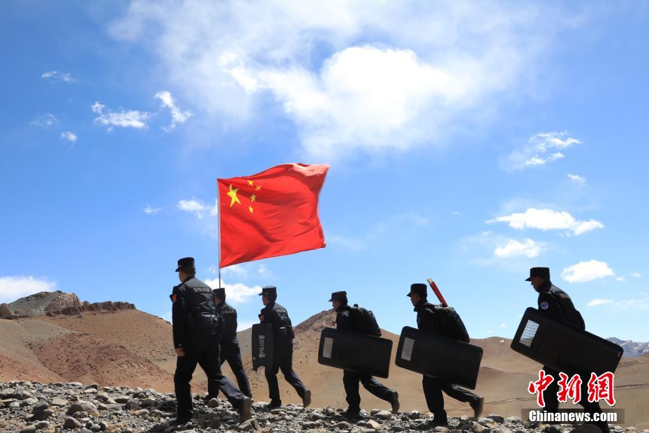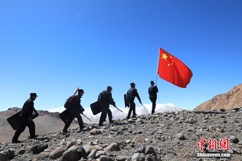 近日,西藏阿里邊境管理支隊(duì)扎西崗邊境派出所組織民警和護(hù)邊員通過乘車巡邏和徒步巡邏相結(jié)合的方式,前往海拔4800米的“守邊固邊第一村”——典角村古格川執(zhí)勤點(diǎn)巡邏,經(jīng)過一個(gè)小時(shí)的車巡和一個(gè)小時(shí)的徒步巡邏,民警到達(dá)了古格川執(zhí)勤點(diǎn)。通過巡邏,及時(shí)掌握了邊境一線情況,確保了邊境轄區(qū)安全穩(wěn)定。圖為民警與國旗合影。郭遠(yuǎn)敬 攝