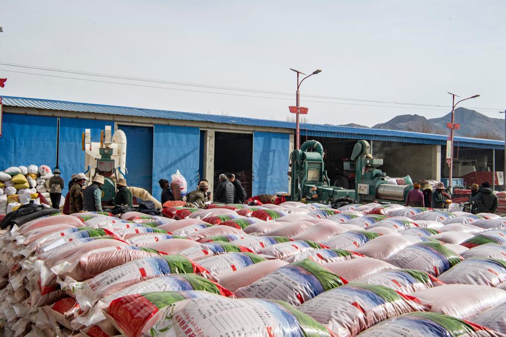 在西藏日喀則市江孜縣紫金鄉(xiāng)努堆村的農(nóng)機(jī)農(nóng)民專(zhuān)業(yè)合作社內(nèi),兩臺(tái)青稞種谷物精選機(jī)正開(kāi)足馬力,給新收獲的青稞良種過(guò)篩、除雜、包衣、裝袋,50公斤一袋的青稞良種已碼滿(mǎn)大半個(gè)院子。