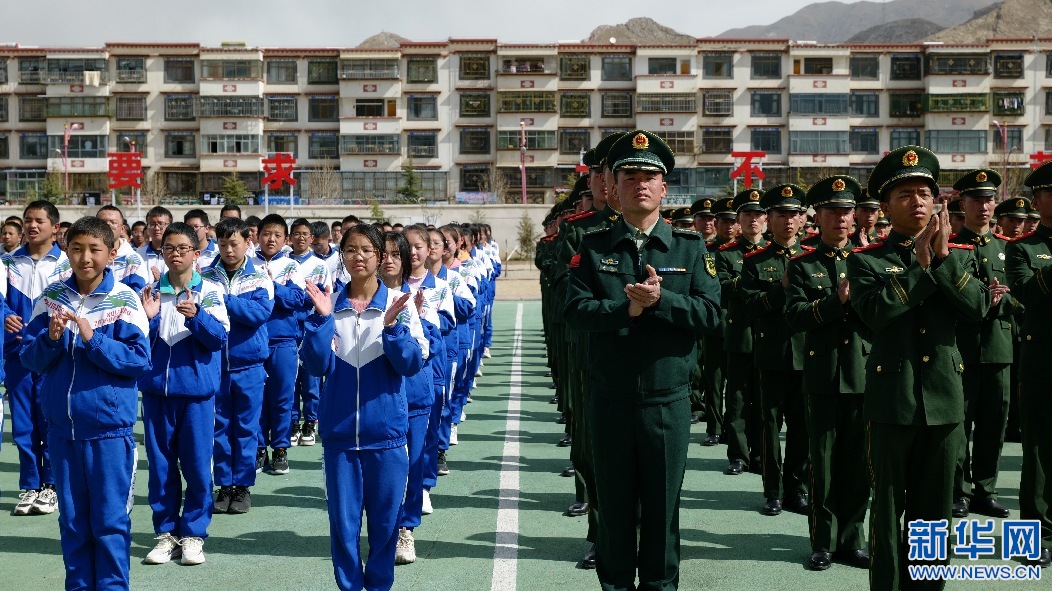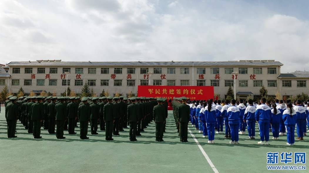 14日上午,武警西藏總隊某部與拉薩市第八中學(xué)在拉薩舉行軍民聯(lián)誼共育簽約儀式,來自武警總隊某部的官兵和拉薩市第八中學(xué)的師生約400人參加了簽約儀式。