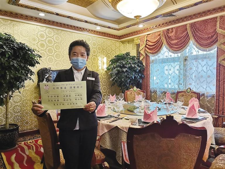 拉薩一餐飲店的文明餐桌標語。