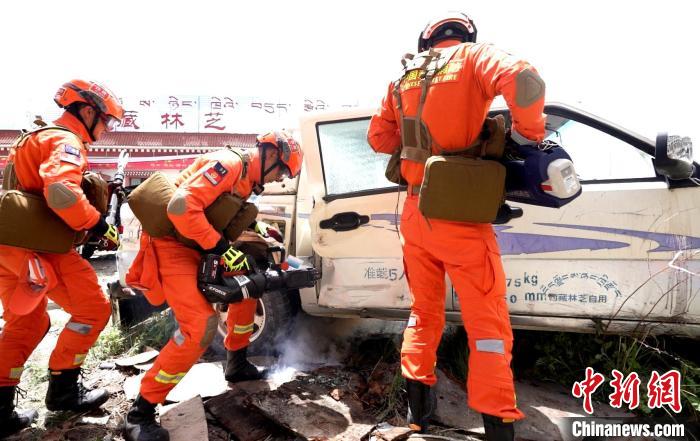 圖為演練中救援現(xiàn)場(chǎng)。西繞拉翁 攝