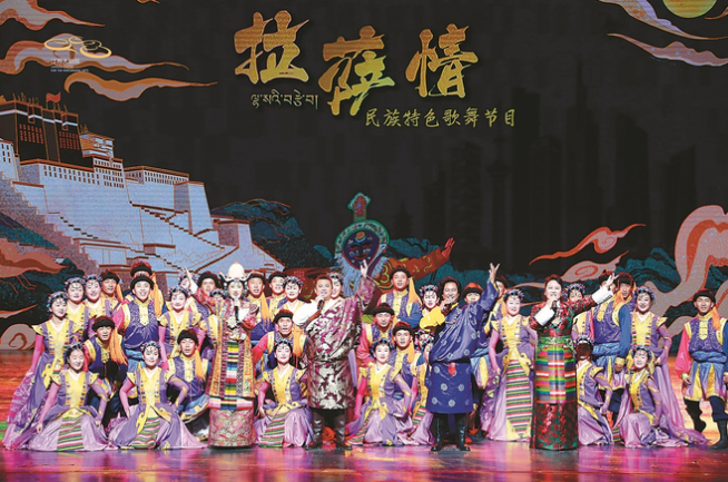 西藏,素有“歌舞的海洋”的美譽(yù),來自民間的歌舞品類眾多、風(fēng)格各異。演出中,10多個(gè)極具藏族文化特色的歌舞類節(jié)目精彩亮相,既有歷史悠久、蜚聲中外的藏戲、傳統(tǒng)舞蹈等非遺經(jīng)典,也有反映近年來拉薩城市新面貌、人民生活新變化的歌舞節(jié)目,全面展示了拉薩不同時(shí)期、不同內(nèi)容、不同形式的風(fēng)土人情和人文魅力。