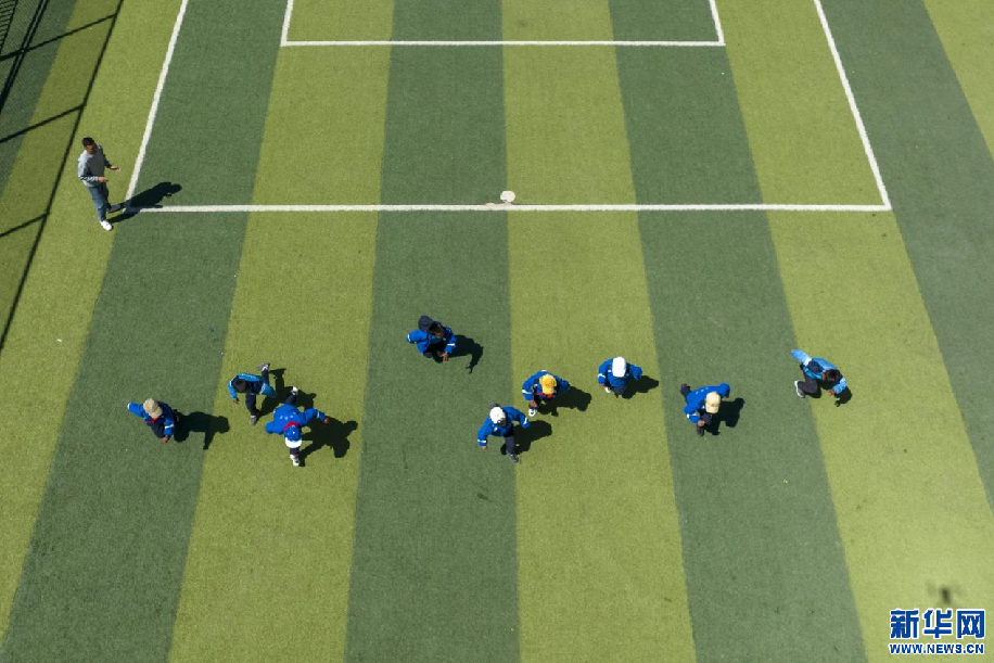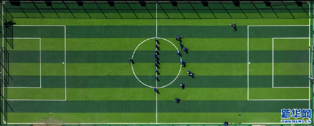 5月15日,西藏定日縣扎西宗鄉(xiāng)完全小學(xué)學(xué)生在上體育課(無(wú)人機(jī)照片)。新華網(wǎng) 旦增努布 攝