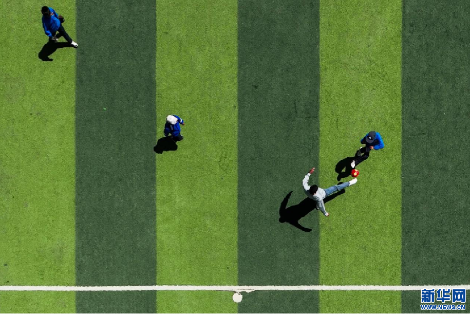 5月15日,西藏定日縣扎西宗鄉(xiāng)完全小學(xué)學(xué)生在比賽中搶球(無(wú)人機(jī)照片)。新華網(wǎng) 旦增努布 攝