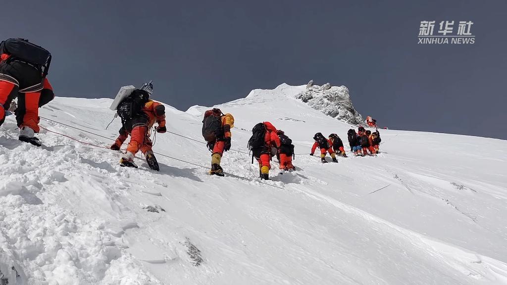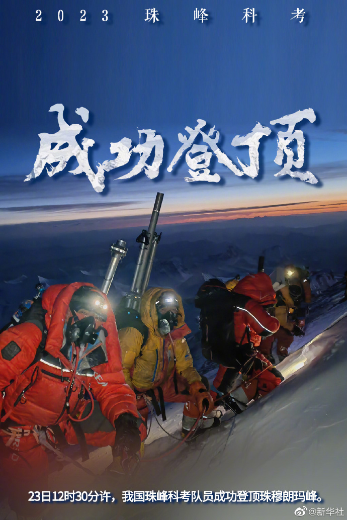這是我國珠峰科考繼2022年之后,再次突破8000米以上海拔高度。當(dāng)日,科考隊員在珠峰峰頂利用科學(xué)儀器,采集珠峰峰頂?shù)难┍鶚悠?,用于分析氣候環(huán)境指標(biāo)。