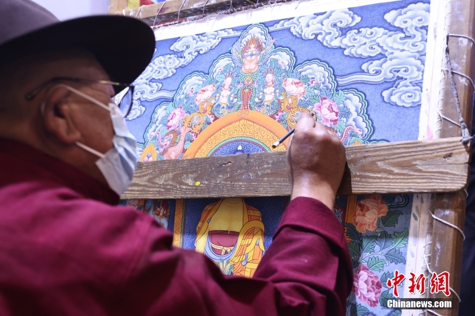 5月23日,“2023·中國西藏發(fā)展論壇”在北京舉行。會場外,活潑獨(dú)特的藏式迎賓舞蹈、展示西藏人文自然風(fēng)貌的圖片,已在論壇開幕前預(yù)熱起探討西藏新發(fā)展的氛圍。圖為藏族藝人現(xiàn)場進(jìn)行唐卡繪制。