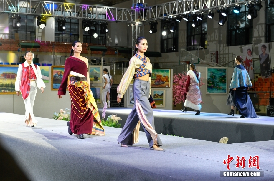5月26日晚,西藏拉薩,西藏職業(yè)技術(shù)學(xué)院旅游與文化學(xué)院舉辦服裝與服飾設(shè)計(jì)專業(yè)2020級畢業(yè)生畢業(yè)作品展演活動(dòng)。本次展演活動(dòng)分為傳承、相遇、未來三部分,展現(xiàn)藏族傳統(tǒng)服裝與現(xiàn)代服裝設(shè)計(jì)的相遇與碰撞。中新社記者 貢嘎來松 攝