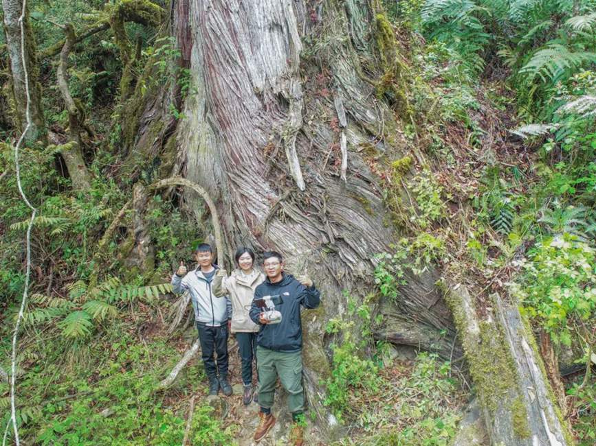 圖為測(cè)量人員站在西藏柏木最高樹(shù)下合照。