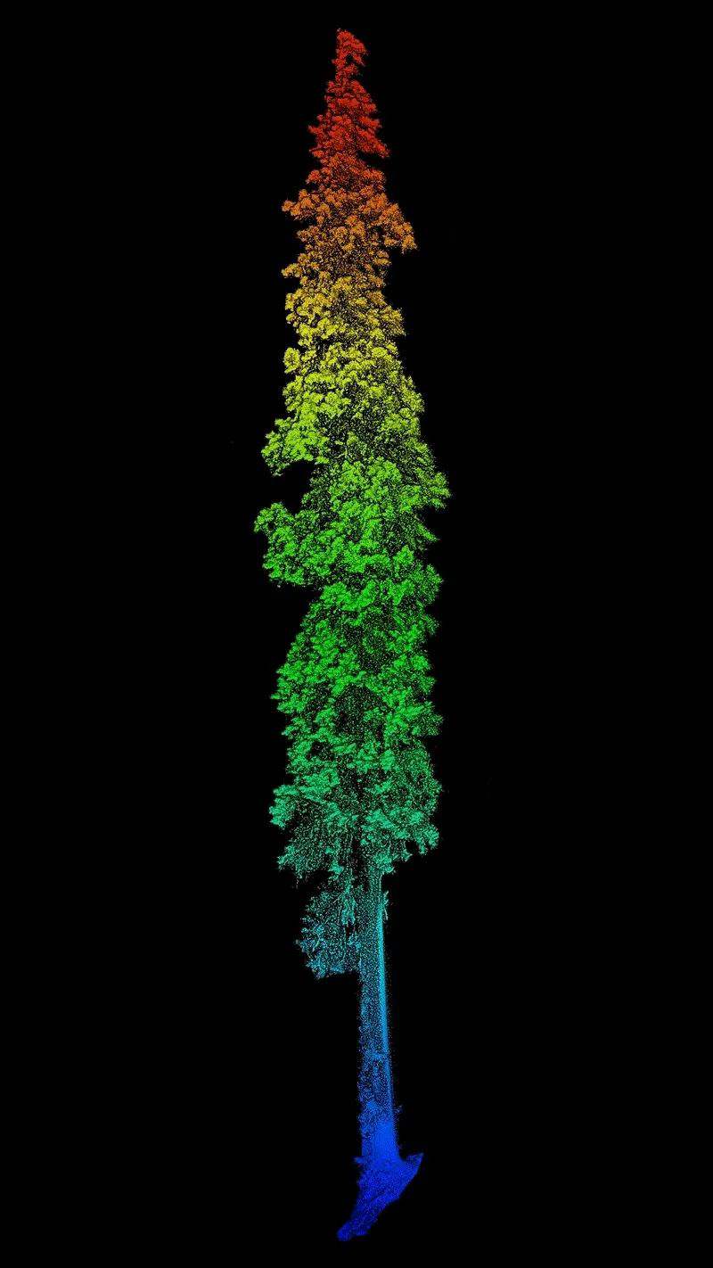 通過(guò)無(wú)人機(jī)與背包激光雷達(dá)相結(jié)合,對(duì)西藏柏木巨樹(shù)聚生區(qū)域進(jìn)行精準(zhǔn)測(cè)量,得到了巨樹(shù)群的精準(zhǔn)三維點(diǎn)云模型。經(jīng)過(guò)高度測(cè)量,發(fā)現(xiàn)其中一棵西藏柏木高達(dá)102.3米,該發(fā)現(xiàn)同時(shí)刷新了中國(guó)與亞洲的最高樹(shù)紀(jì)錄,躋身按樹(shù)種排名的世界最高樹(shù)列表,位列第二。研究團(tuán)隊(duì)獲取了該樹(shù)的精細(xì)三維點(diǎn)云數(shù)據(jù),測(cè)量其胸徑為293厘米,并采用無(wú)人機(jī)攝影的方式獲取了巨樹(shù)等身照。