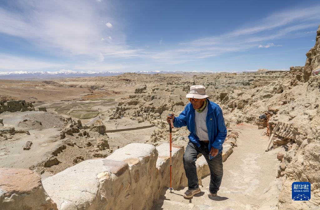 仁增旺扎老人巡查各個(gè)石窟,這是他多年來(lái)的習(xí)慣(5月26日攝)。新華社記者 晉美多吉 攝