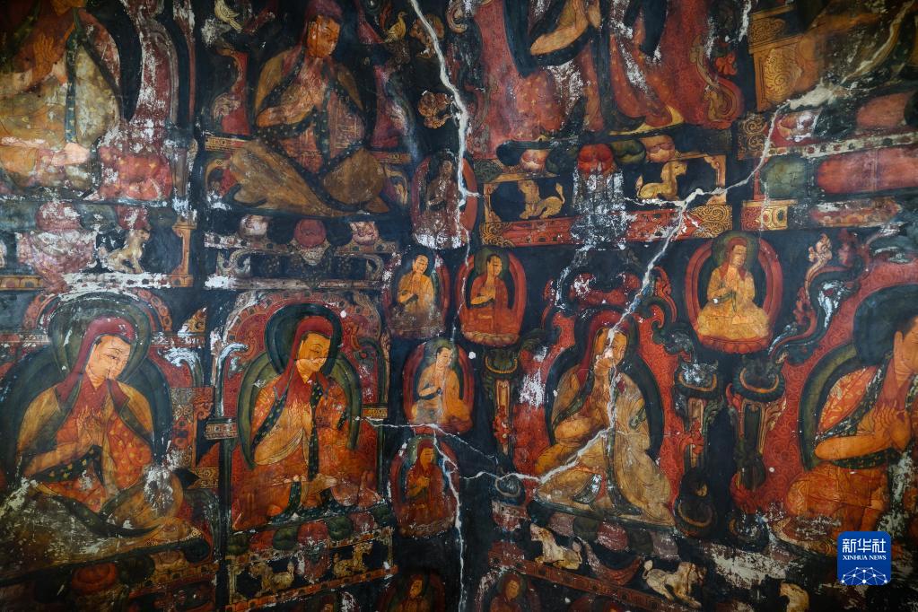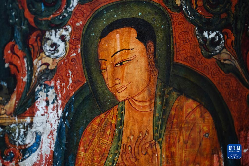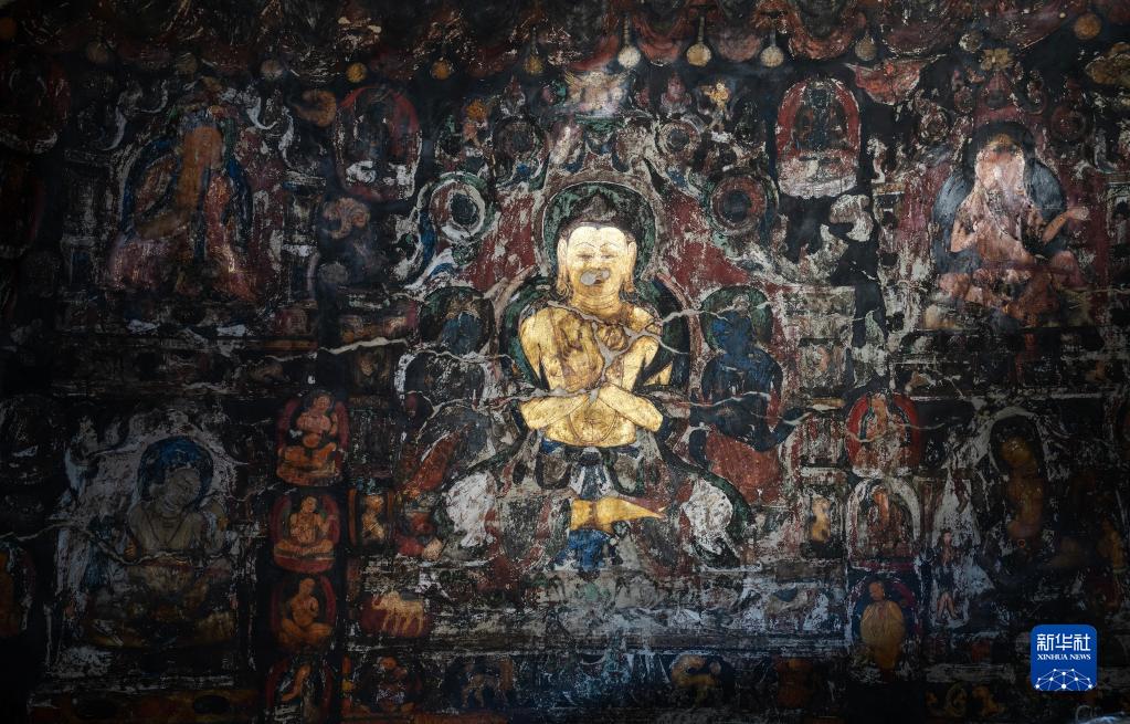 5月26日拍攝的皮央石窟壁畫(huà)局部。新華社記者 費(fèi)茂華 攝