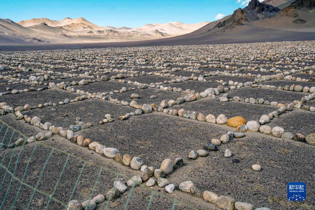 扎西崗鄉(xiāng)的副鄉(xiāng)長索南次仁對記者說,這個“巨石陣”是扎西崗鄉(xiāng)全體村民和干部一起上陣,從2017年開始連續(xù)工作了三年完成的,目的是防風固沙,保護扎西崗鄉(xiāng)的冬季草場不被風沙侵襲甚至掩埋,從目前的情況來看,效果良好。