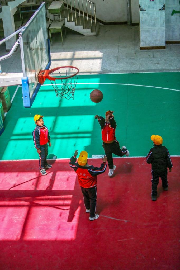 6月5日,扎西宗鄉(xiāng)完全小學的學生在室內體育館上籃球課。