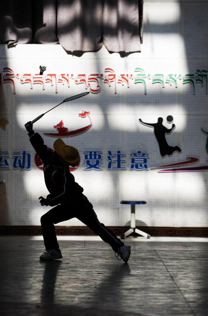6月5日,扎西宗鄉(xiāng)完全小學的學生在室內體育館上體育課。