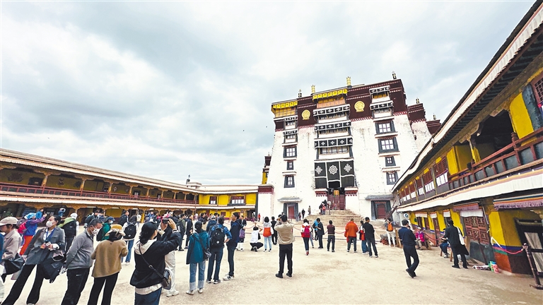 活動(dòng)邀請(qǐng)了文化和旅游部領(lǐng)導(dǎo)、援藏省區(qū)市嘉賓、旅游企業(yè)代表以及媒體記者團(tuán)200余人,前往布達(dá)拉宮、大昭寺、西藏博物館、羅布林卡等景點(diǎn)“打卡”。在布達(dá)拉宮東大殿,大家觀賞記載有西藏佛教發(fā)展歷史、五世達(dá)賴(lài)生平、文成公主進(jìn)藏過(guò)程的壁畫(huà);來(lái)到羅布林卡,蔥綠的樹(shù)木、鮮艷的花朵、宏偉的藏式建筑讓人流連忘返。