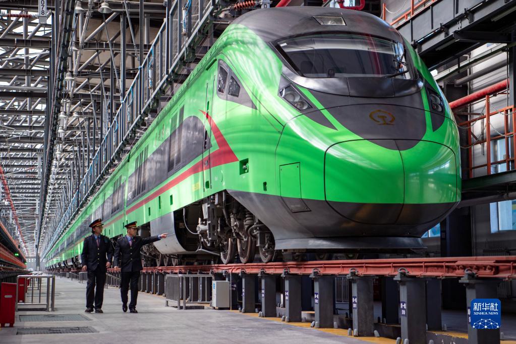 在拉薩機輛整備中心,“復興號”動車組在檢修庫進行整備作業(yè)(1月11日攝)。新華社記者 孫非 攝