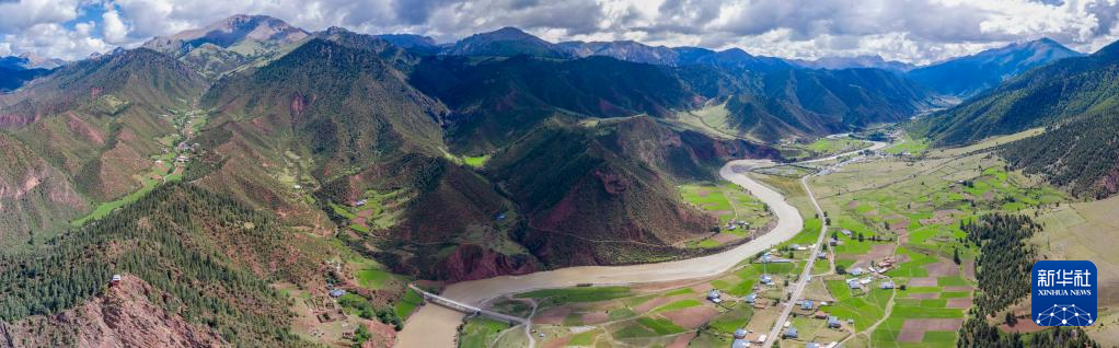 6月22日在國道317線昌都段拍攝的丁青縣的村莊(無人機照片)。新華社記者 姜帆 攝