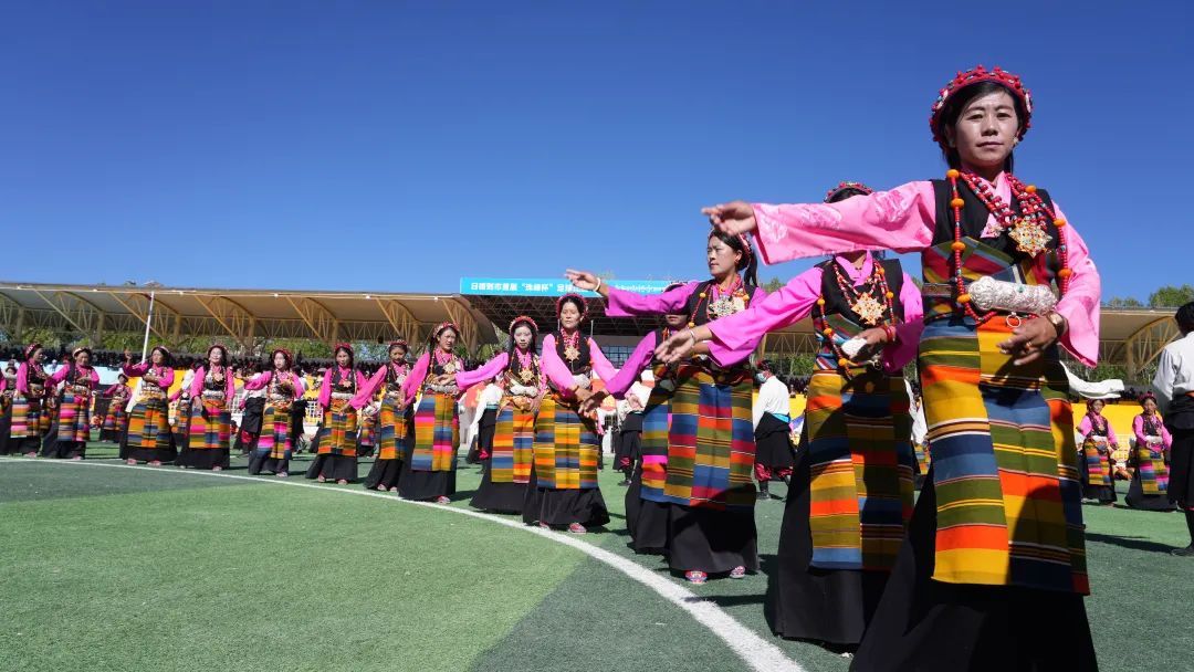 6月25日上午,主題為“相約珠峰·千人弦音”日喀則大型非遺歌舞展演在西藏自治區(qū)日喀則市上海體育場震撼上演?,F(xiàn)場共1000名參與者同時表演日喀則非遺民俗舞蹈。