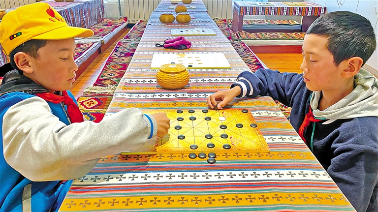 近年來,拉薩市堆龍德慶區(qū)古榮小學(xué)在完成和落實(shí)國家教育課程的同時(shí),不斷豐富學(xué)生課余文化生活,滿足學(xué)生個(gè)性化發(fā)展的需要,于2015年開設(shè)了國家級(jí)非物質(zhì)文化遺產(chǎn)代表性項(xiàng)目之一——藏棋課程,成為該校辦學(xué)的特色。