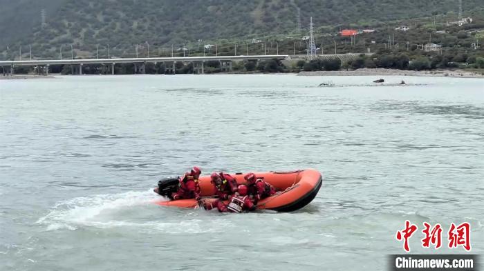 圖為消防員正在進(jìn)行舟艇快速救援訓(xùn)練。 西繞拉翁 攝