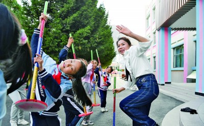 山南市第三小學(xué)的援藏教師甘夭娥帶領(lǐng)學(xué)生練習(xí)藏族傳統(tǒng)舞蹈“打阿嘎”。作為教育大省,湖南通過實(shí)施“山南湖南學(xué)校聯(lián)盟”工程,采取“一所學(xué)校包一個(gè)學(xué)科”的形式,把優(yōu)質(zhì)教育資源下沉到縣區(qū)和鄉(xiāng)村學(xué)校。攝影:辜鵬博(湖南日?qǐng)?bào)攝影記者)