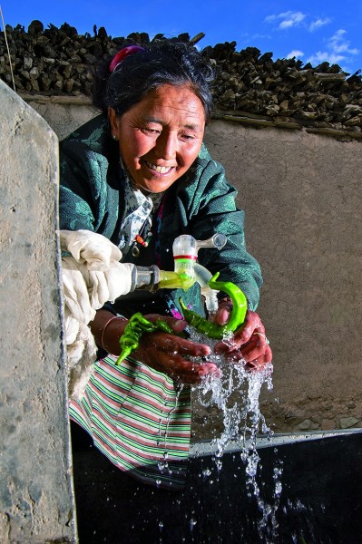 山南市隆子縣隆子鎮(zhèn)葉巴村村民查斯卓瑪用自來水清洗辣椒。攝影:辜鵬博(湖南日?qǐng)?bào)攝影記者)