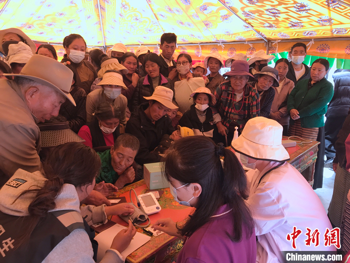 圖為7月10日,醫(yī)療專(zhuān)家在邊壩縣尼木鄉(xiāng)義診。 中新社記者 陳建新 攝