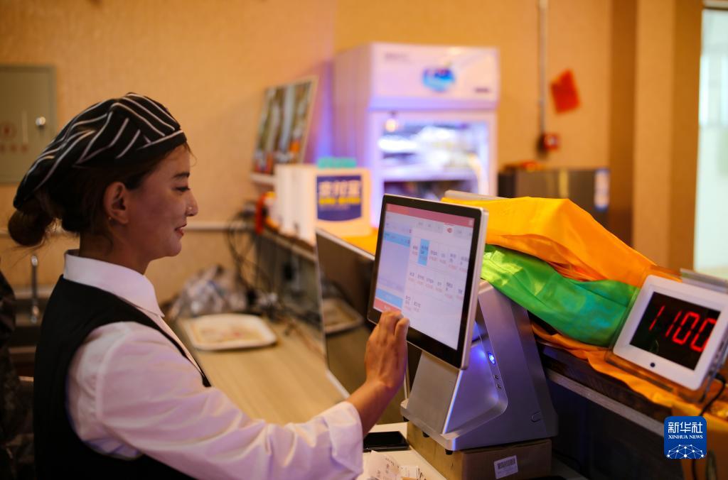 多爾格村村民尼達(dá)卓瑪在合作社開辦的茶館前臺收銀(7月11日攝)。新華社記者 姜帆 攝