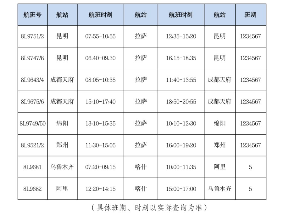 據(jù)了解,祥鵬航空“阿里—喀什—烏魯木齊”獨(dú)飛航線于6月23日復(fù)航,每周五執(zhí)飛一班;“拉薩—成都天府”航線于7月1日起升級為空客A330寬體機(jī)執(zhí)飛。