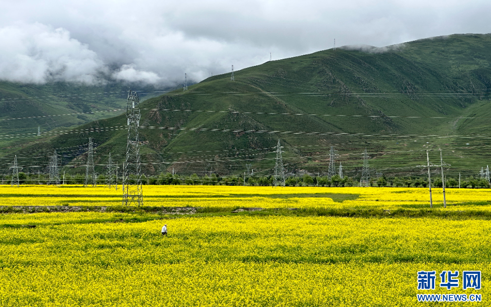圖為西藏拉薩市墨竹工卡縣內(nèi)綻放的油菜花(7月16日攝)。新華網(wǎng)發(fā) 何冰婕 攝